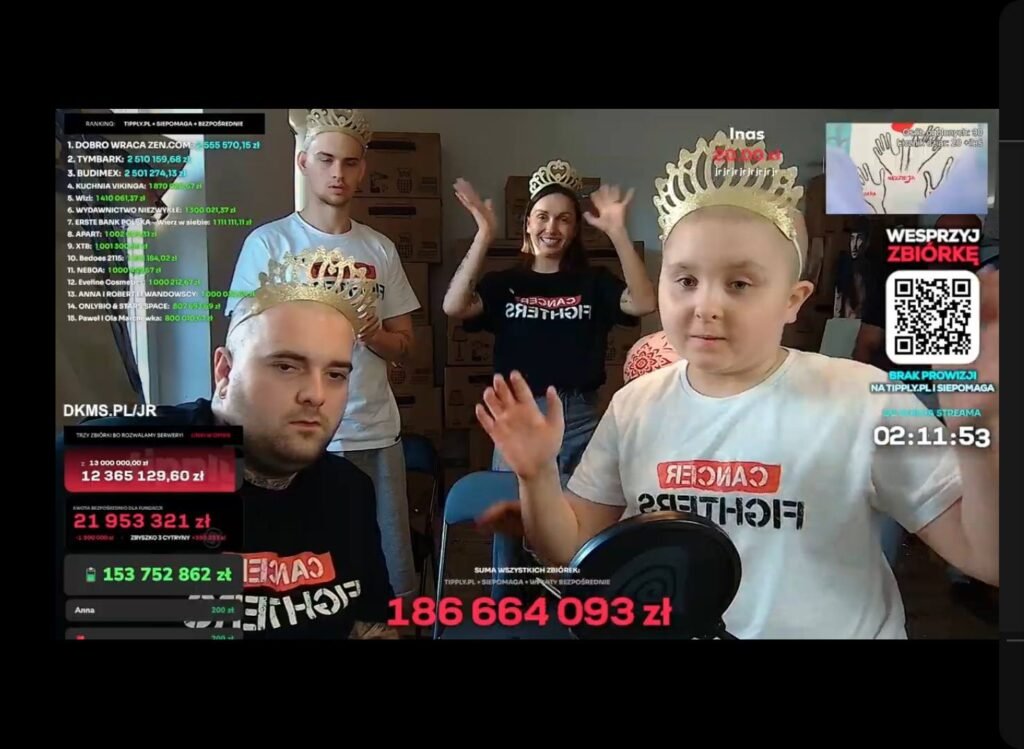 Najpiękniejsze wydarzyło się jednak w ostatnich godzinach. Wtedy oddano przestrzeń samym dzieciom – podopiecznym Fundacji. Były na streamie już wcześniej, ale finał należał właśnie do nich. To one apelowały o domknięcie zbiórki na poziomie 250 milionów. Trudno wyobrazić sobie większą odwagę i bardziej autentyczny moment.