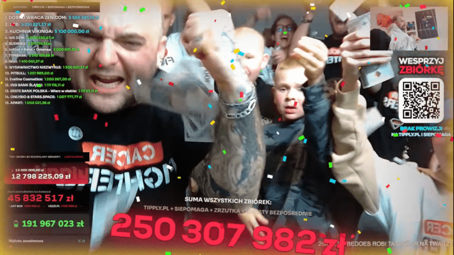 Celem streamu było zebranie pół miliona złotych dla podopiecznych Fundacji Cancer Fighters. Efekt przerósł wszystko, co można było przewidzieć. Zebrano ponad 250 milionów złotych, a transmisję w końcowych momentach oglądało na żywo ponad 1,4 miliona osób.